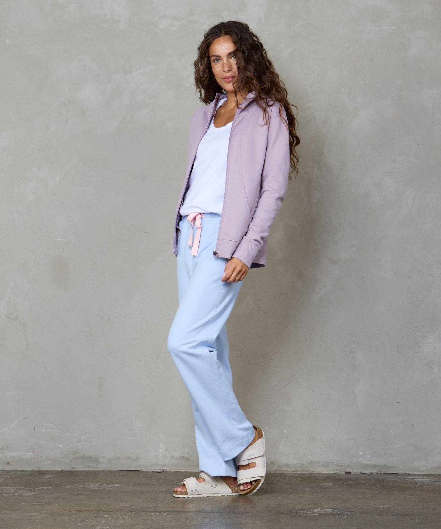 Our new Zip Up Hoodie is trending Dusty Rose is made with certified organically grown cotton and designed with a high neckline for extra coverage and full zip for a more structured fit. Paired perfectly with our matching Chloe Lux Jogger in Dusty Rose with a Navy Drawstring.