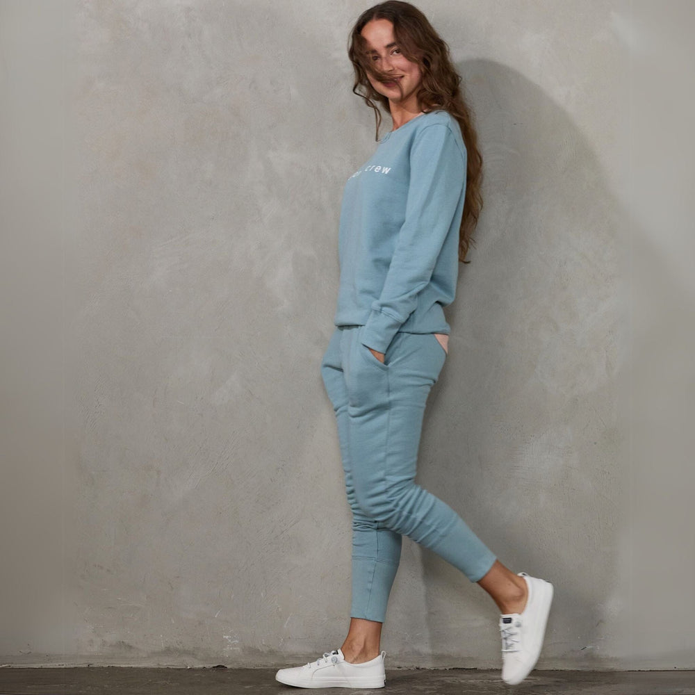 Boyfriend Organic Cotton Sweater Logo Steel Blue